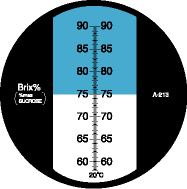 測(cè)量范圍:Brix 58.0 至 90.0%;最小標(biāo)度:Brix 0.2%。