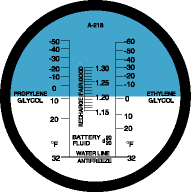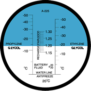 本折射儀的特殊標(biāo)度能測(cè)量電池水的比重,了解做為汽車防凍劑或太陽(yáng)能電力系統(tǒng)的熱催化劑的乙二醇與丙二醇的凍結(jié)溫度。模塊BC-2E的標(biāo)度是為°C,而模塊BC-3E為°F。