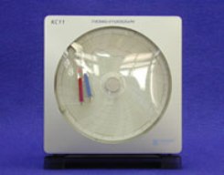 The KC11 provides recording of RH and temperature (available in both Centigrade or Fahrenheit models) for 1 day (24 hours), 8 days, or 32 days – switch selectable. The KC11 has earned the respect and admiration worldwide for being a very economical solution to portable, temporary and permanent recording applications. It is operated with two "AA" 1.5 volt batteries and operates for up to one full year on this simple power source. The KC11 is in stock in our