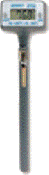 用數(shù)字溫度計測量的時候,拿掉保護(hù)套,按“on/off”鍵打開電源,然后把探針的1/2以上長度插入被測區(qū)域。按“D-H”鍵鎖定顯示數(shù)據(jù),當(dāng)“D-H”功能有效的時候,數(shù)字會閃爍,再次按下“D-H”鍵則回到正常測量模式。