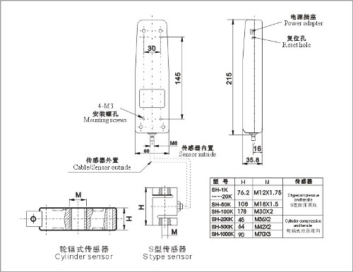 SH系列數(shù)顯式推拉力計(專利號:ZL 2004 3 0151019.3)是小型簡便的推力、拉力測試儀器,具有高精度高分辨率;測試方向顯示;藍色背光燈;上下限偏差值設定判斷,紅綠指示燈及蜂嗚器自動聲光報警設置;可存儲10組測試數(shù)據,自動計算存儲數(shù)據的平均值;三種單位N、kgf、lbf自動互換;具有測試峰值保持、峰值自動解除及解除時間自由設定功能;無操作自動關機的省電設計,關機時間自由設定;串口(RS