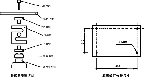 注意:安裝時請居中安裝傳感器、機臺、千斤頂。測試使用時,拉壓負(fù)荷力的方向應(yīng)在機臺中心。