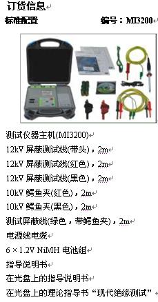 MI3200 大功率高電壓數(shù)字兆歐表 ,主機(jī);測量導(dǎo)線, 測試探針, 掛帶,操作手冊
