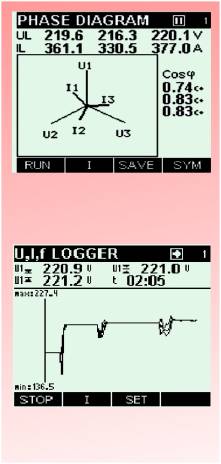 通過(guò)預(yù)設(shè)的記錄屏幕,可對(duì)所有主要電力質(zhì)量參數(shù)進(jìn)行現(xiàn)場(chǎng)評(píng)估(U、I、P、功率因數(shù)、cosφ、總諧波失真、單獨(dú)諧波分量測(cè)量、相移等)。