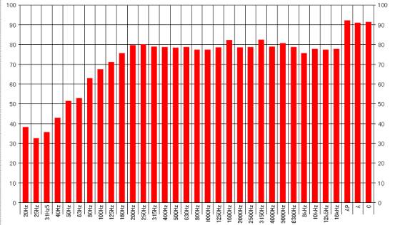 8. 頻譜特性: 見圖(輸入白噪聲,消聲室內距聲源中心