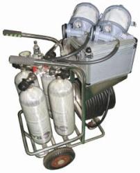 SP-98車(chē)式長(zhǎng)管呼吸裝置 小車(chē),4個(gè)氣瓶及瓶套,50m長(zhǎng)管1根,5米短管2根,背帶2套,面罩2個(gè),三通快速接頭,面罩兜,操作說(shuō)明書(shū),工具包