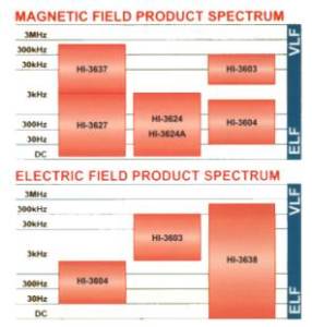 美國HOLADAY公司提供從5赫茲到400千赫茲的低頻電場磁場檢測儀。所有產(chǎn)品均可配全向或單軸探頭,響應迅速,顯示真有效值。