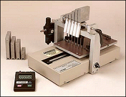 本儀器基于以下汽車(chē)標(biāo)準(zhǔn)設(shè)計(jì)(福特 BN 108-13; 通用 GMN3943; 戴姆勒克萊斯勒 LP-463DD-18-01), 通常有五個(gè)觸點(diǎn)。 儀器含有氣動(dòng)和可安裝樣品的傳動(dòng)裝置。傳動(dòng)裝置直線行走,有一個(gè)旋鈕控制??捎糜谝粋€(gè)或多個(gè)樣品通行檢測(cè) 。電子計(jì)時(shí)器顯示速度,可以通過(guò)改變空氣壓力來(lái)控制這個(gè)速度。 儀器支架支持五個(gè)獨(dú)立的花鍵桿,這樣可以為磨針加載連續(xù)垂直的力(磨針可互換,直徑1.0mm或7.0mm,為半圓型頭)。支架的手柄可控制它懸臂的高低,五個(gè)支撐架可使一個(gè)或更多懸臂移動(dòng)到不礙事的地方,從而觸碰不到測(cè)試中的樣本。 不同的重量塊狀在懸臂的上端,保證作用在樣品表面上的是標(biāo)準(zhǔn)大小的力。每套儀器含有的重量快有: 2N, 3N, 4N, 5N, 6N, 7N, 10N, 15N 和 20N 。另外還可購(gòu)得8N, 13N, 18N 和 25N的重量塊。. 盡管通常情況下22mm以內(nèi)厚度的扁平樣品都能測(cè),但前提是樣品邊緣不要太厚,樣品不要太軟或固定得足夠好。標(biāo)配里含有帶彈簧的樣品固定裝置,它可以固定在樣品臺(tái)的邊緣,以獲得更好的機(jī)動(dòng)性。針對(duì)更厚的樣品,可以選購(gòu)"可移動(dòng)的"緊固夾。 儀器的標(biāo)準(zhǔn)配置: | |||||||||