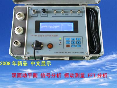 該儀器操作簡單,人機對話。測試分析精度高. 全新設計,測試分析快速,圖線清晰. 大屏幕彩色液晶顯示,漢字顯示,很方便地用于現(xiàn)場汽輪機、水輪機、農(nóng)業(yè)機器、離心機、風機、水泵等旋轉機械動平衡的測量,動平衡的糾正 及信號分析(波形顯示\FFT分析)。也可以與平衡機配套,直接替代平衡機電箱,用于老平衡機的改造。是廠礦企業(yè)、技術鑒定部門檢測動平衡的專用工具。特別在旋轉機械動平衡檢測方面,只需按一下按鍵,便知被檢測的機械總振動值是多少及由于旋轉部份產(chǎn)生不平衡量是多少,一目了然便知該產(chǎn)品是否合格。它既可以在現(xiàn)場對設備進行動平衡,還可以進行振動檢測與振動分析。數(shù)字顯示設備的轉速、振幅、相位,最終得到平衡所需的加(去)重重量、相位,全部功能實現(xiàn)在一只公 文箱中,真正便攜。主要功能和德國申克公司的VIBROPORT系列通用振動測試儀相同。