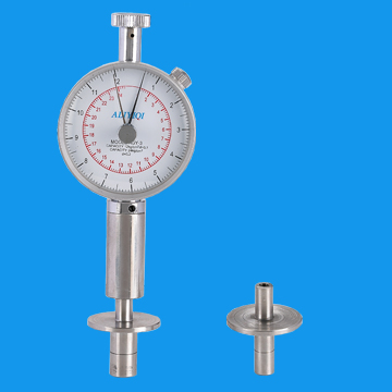 水果硬度計(jì)(又稱果品硬度計(jì)),該產(chǎn)品共分AGY-1,AGY-2,AGY-3三種型號(hào),用來測(cè)量蘋果、梨、西瓜、香蕉等多種水果的硬度,用以判定水果的成熟程度,對(duì)培育良種,采摘時(shí)間,加工時(shí)間,收獲儲(chǔ)存,出口運(yùn)輸?shù)炔烧暮侠碚莆?。它適用于果樹科研部門,果樹農(nóng)場(chǎng),果品公司,大專院校等單位使用。該儀器體積小,重量輕,數(shù)值顯示直觀,攜帶方便,適用于各種果品場(chǎng)所對(duì)果品的檢驗(yàn)。也可裝配于專用的機(jī)臺(tái)使用,可提高測(cè)試時(shí)的精度,適用于專業(yè)檢測(cè)部門。