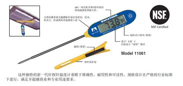 DeltaTRAK 大屏LCD顯示自動(dòng)校準(zhǔn)針探針溫度計(jì)FlashCheck