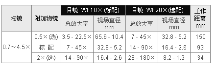 3.放大倍率: 7~45×連續(xù)變倍 (可選配至225×)