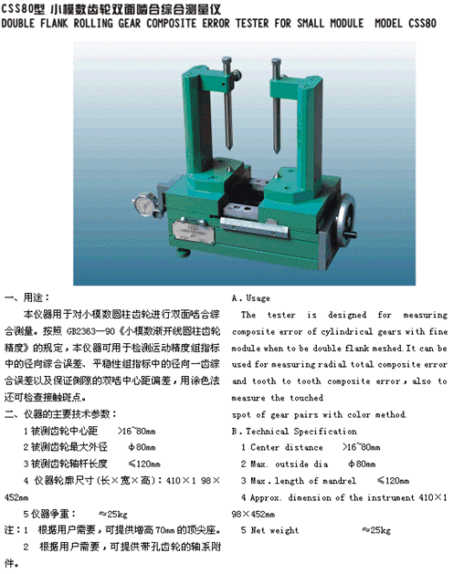 成都成量工具小模數(shù)齒輪雙面嚙合綜合測量儀CSS80型
