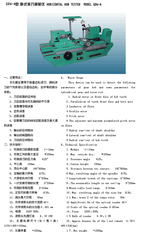 - 儀器名稱:臥式滾刀測量儀