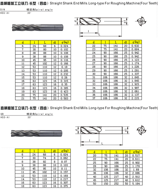 - 儀器名稱:直柄粗加工立銑刀·長(zhǎng)型(四齒)