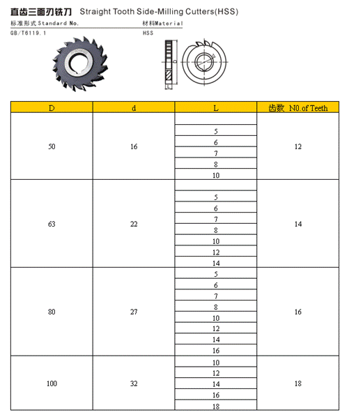 直齒三面刃銑刀