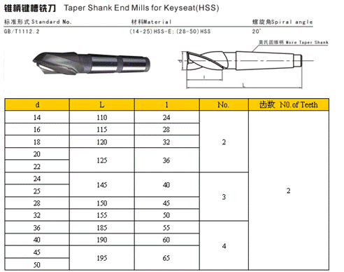 - 儀器名稱(chēng):錐柄鍵槽銑刀