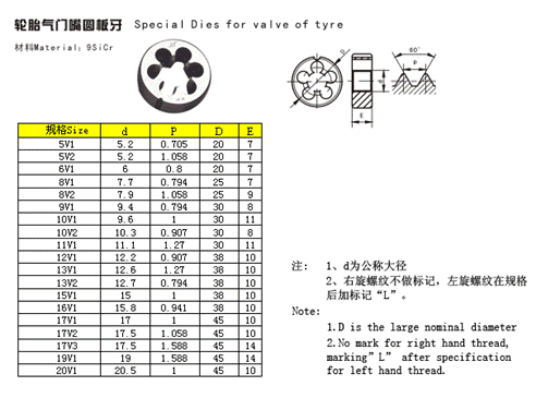- 儀器名稱:輪胎氣門嘴圓板牙