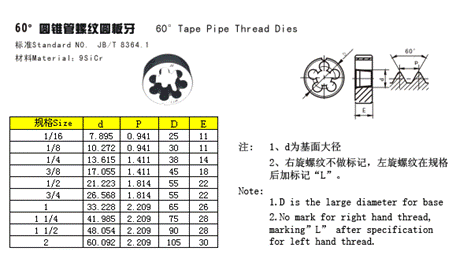 - 儀器名稱:60°圓錐管螺紋圓板牙