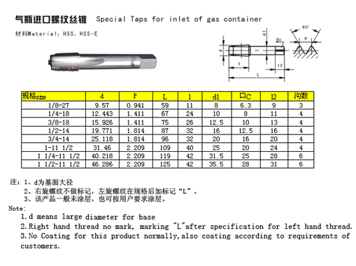 - 儀器名稱(chēng):氣瓶進(jìn)口螺紋絲錐
