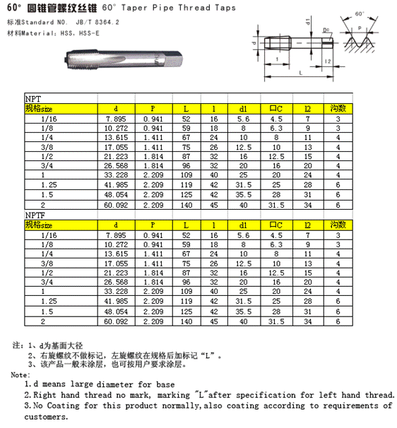 60°圓錐管絲錐