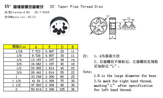 55°圓錐管螺紋圓板牙