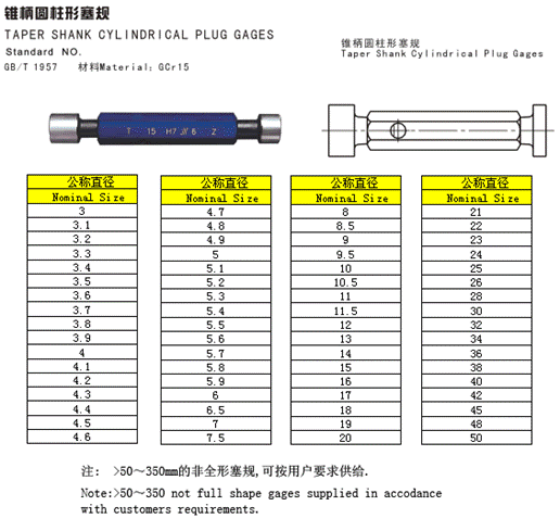 - 儀器名稱:錐柄圓柱形塞規(guī)