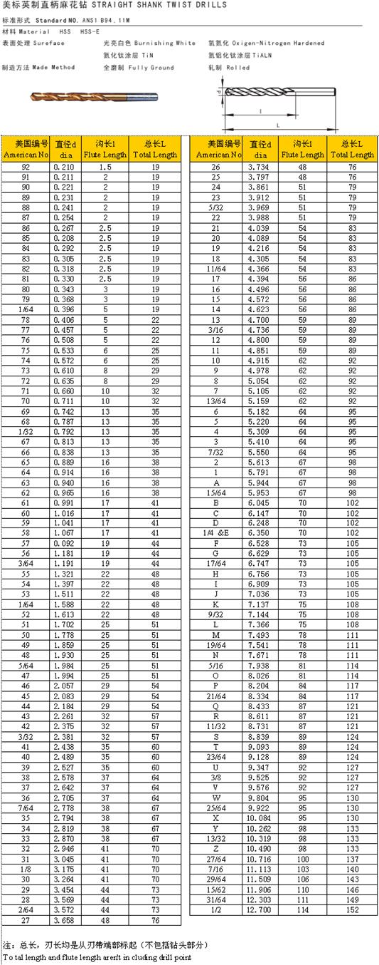 - 儀器名稱:美標(biāo)英制直柄麻花鉆