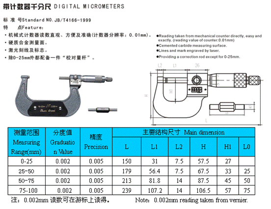- 儀器名稱:帶計數(shù)器千分尺