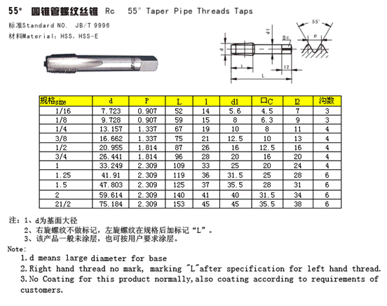 55°圓錐管絲錐