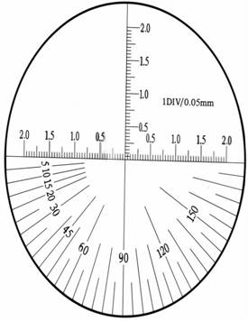 - 關(guān)鍵參數(shù):技術(shù)參數(shù): 放大倍數(shù): 25倍 物方視場 : 4mm 測量范圍:0~4mm 測量分劃值:0.05mm 角度測量:0~180° 測量精度:±1% 物方工作距離: 31.3mm 系統(tǒng)焦距 : -10 數(shù)值孔徑 : 0.088 系統(tǒng)長度: 122.6mm LED亮度: 600~1000 充電電流: 10mA 充電時間 : 1小時 放電時間 : 2小時