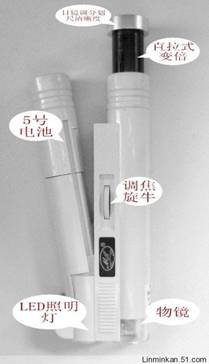 、兩邊拉開電池盒部份燈就會(huì)亮,把觀察物放在防護(hù)罩中心,把眼睛對(duì)準(zhǔn)目鏡,調(diào)節(jié)調(diào)焦齒輪,至看清為止。變倍時(shí)直接把目鏡拉出實(shí)現(xiàn)變倍,然后再調(diào)焦直到看清為止。