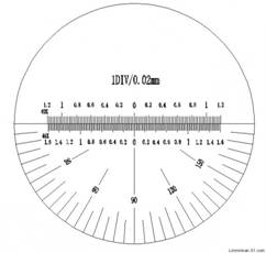 目鏡最下面是45倍,目鏡最上(拉上來(lái))面是60倍,分劃刻度尺分別是45倍和60倍對(duì)應(yīng)刻度測(cè)量。目鏡可360°旋轉(zhuǎn)對(duì)應(yīng)被看物,目鏡旋轉(zhuǎn)調(diào)整,可同時(shí)看清分劃尺和視野中的物體,可適應(yīng)不同視力用戶(hù)使用。目鏡順時(shí)針?lè)较蛐D(zhuǎn)可同時(shí)測(cè)量孔距、刻線寬度、刻線距離、鍵槽寬度、狹縫凹痕寬度、長(zhǎng)度、金屬和非金屬表面質(zhì)量、纖維、織物密度、野外標(biāo)本等,XK系列均可同時(shí)測(cè)量0~180°角度。