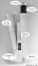 4、兩邊拉開電池盒部份燈就會亮,把觀察物放在防護罩中心,把眼睛對準目鏡,調節(jié)調焦齒輪,至看清為止。變倍時直接把目鏡拉出實現(xiàn)變倍,然后再調焦直到看清為止。