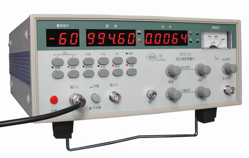 - 關(guān)鍵參數(shù):KH4116B型低失真度測量儀是一臺(tái)數(shù)字化的儀器,它是在總結(jié)了我國1965年SZ-3型、1969年第一臺(tái)全晶體化的BS1型和1973年BS1A型(BS1的改型)前兩代失真度測量儀設(shè)計(jì)的基礎(chǔ)上結(jié)合當(dāng)代技術(shù)的發(fā)展和客觀用戶的需要重新設(shè)計(jì)的,最小失真測量提高到0.01%,達(dá)到低失真度測量的范圍,它是一臺(tái)性能/價(jià)格比較好的準(zhǔn)智能型的儀器。 被測信號(hào)的電壓、失真、頻率全部由LED自動(dòng)顯示,采用真有效值檢波,可在電壓測量范圍為300V~300μV,頻率范圍為10Hz~550KHz之內(nèi)實(shí)現(xiàn)全自動(dòng)測量,失真度測量范圍為100%~0.01%。 在失真度測量方式時(shí)實(shí)現(xiàn)了寬范圍校準(zhǔn),失真度量值既可以隨濾諧過程自動(dòng)跟蹤顯示,也可以用手動(dòng)衰減器按10dB步進(jìn)跟蹤。為了提高測量精度,可以隨時(shí)用相位調(diào)節(jié)和平衡調(diào)節(jié)。